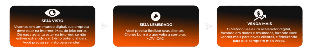 O Método See utiliza ferramentas da internet para que a sua empresa seja vista e venda mais, alcançando e fidelizando novos clientes.
